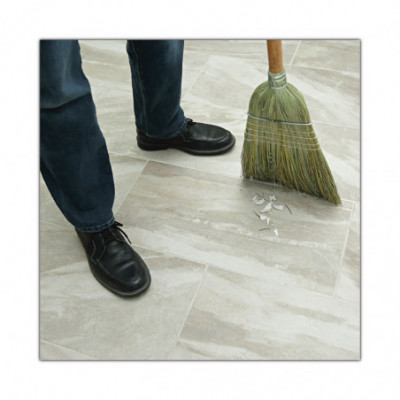 Natural colored, warehouse broom for heavy-duty sweeping. Constructed with stiff, natural, corn fiber bristles that are tightly secured to the handle with a heavy, metal wire. An ideal, sturdy broom for sweeping concrete and other rough floor surfaces. Solid wood handle that's lacquered to prevent splintering and blistering. Four rows of stitching provide added strength and durability for lasting use.