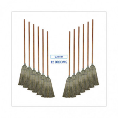 Warehouse Broom, Yucca Corn Fiber Bristles, 56" Overalll Length, Natural, 12/Carton