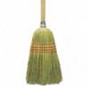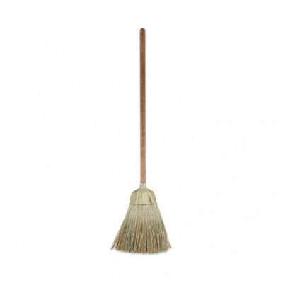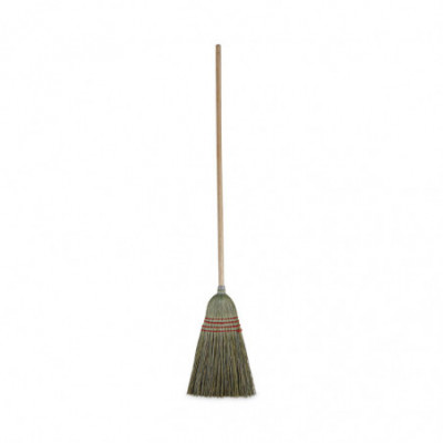 Economy and performance are hallmarks of this upright, corn fiber broom. Bound with double-stitched nylon cord for durability. Constructed with stiff, natural, corn fiber bristles that are tightly secured to the handle with a heavy, metal wire. Durable upright broom can tackle routine or heavy-duty cleaning jobs. Solid wood handle that's lacquered to prevent splintering and blistering. Four rows of stitching provide added strength and durability for lasting use.