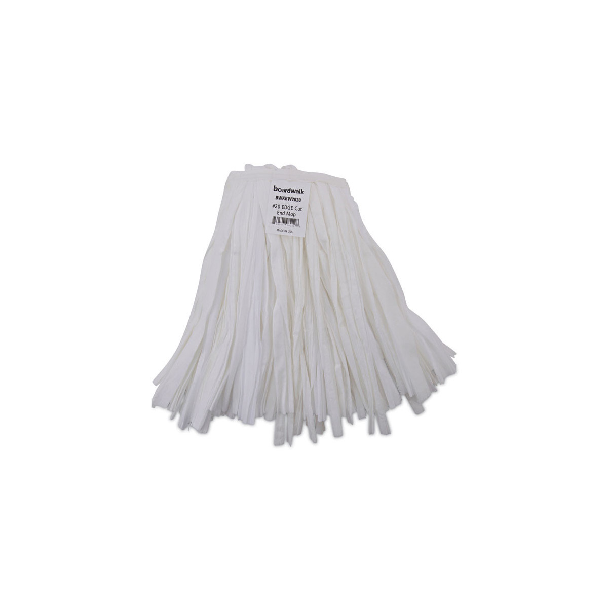 Boardwalk® Nonwoven Cut End Edge Mop is a reliable, white rayon and polyester blend fiber mop that produces less lint than traditional cotton mops. The synthetic heads provide greater absorption than cotton and are easier to wring out, with less unwanted material in waste stream. Each mop is individually packaged to preserve cleanliness and requires no break in. Handle sold separately.