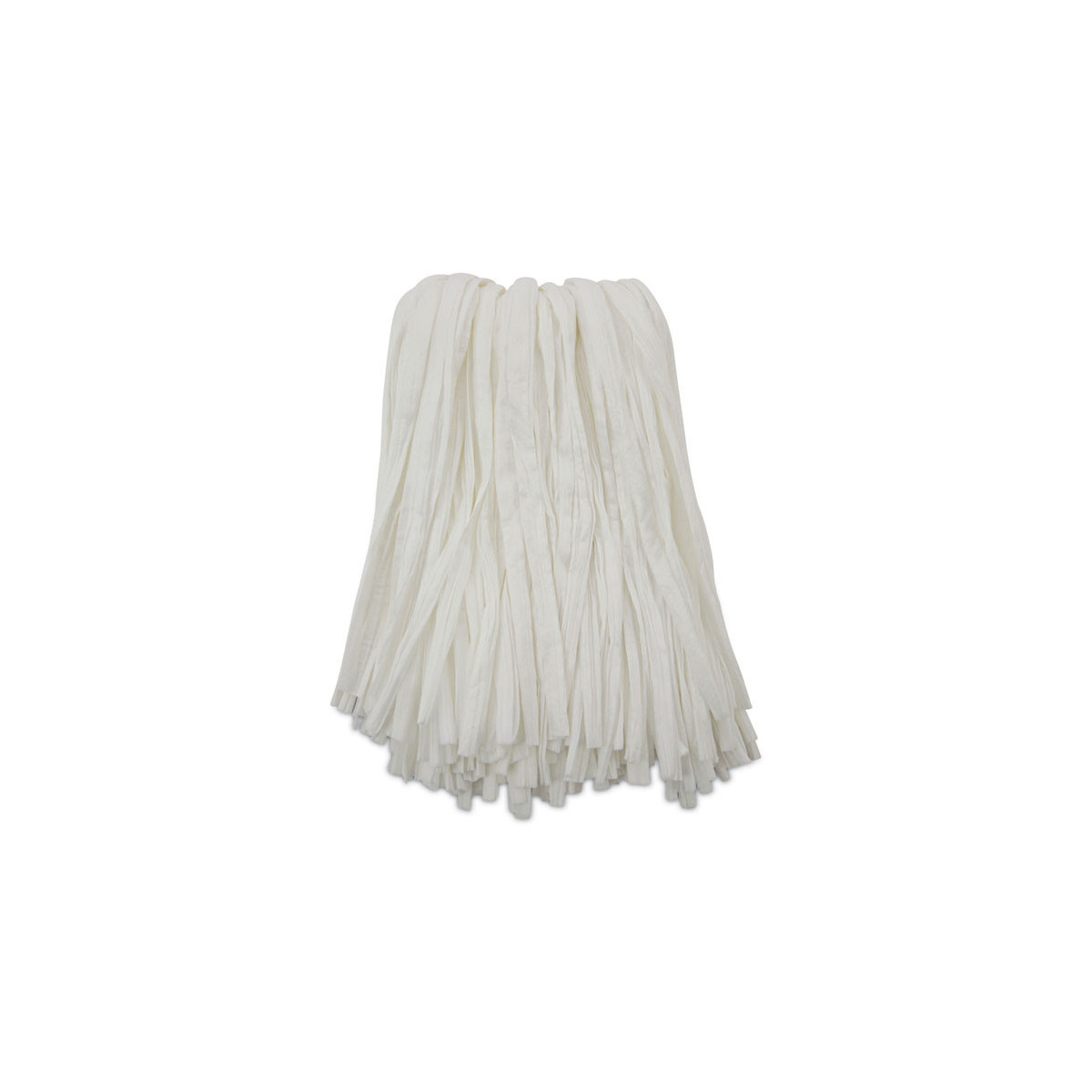 Reliable, white rayon and polyester blend fiber mop that produces less lint than traditional cotton mops. The synthetic heads provide greater absorption than cotton and are easier to wring out, with less unwanted material in waste stream. Each mop is individually packaged to preserve cleanliness and requires no break in. Handle sold separately.