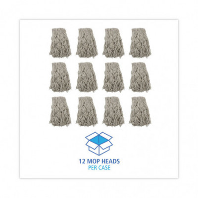 Banded Mop Head, Cotton, Cut-End, White, 16 oz, 12/Carton