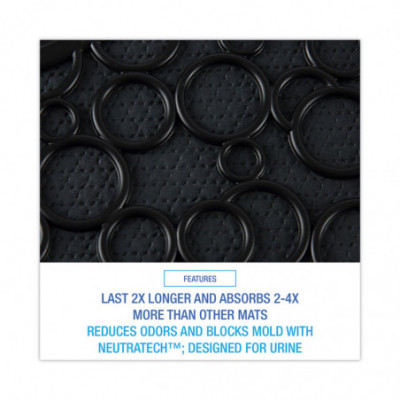 Unique and contemporary commode mat provides an upscale look to catch and neutralize urine splatters. It's perfect for unisex bathrooms and men's rooms without urinals. It absorbs and neutralizes twice as much urine as other mats. Thoughtfully designed with a non-slip tacky bottom layer that seals the urine in and protects floors. Every mat is embedded with NeutraTech™, a mold inhibitor and specially designed odor counteractant for urine. Indicator system reminds you when to change it for timely maintenance without waste.