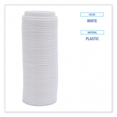 Deerfield Hot Cup Lids, Fits 10 oz to 20 oz Boardwalk Deerfield Hot Cups, Plastic, White, 50/Pack, 20 Packs/Carton