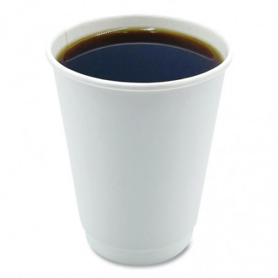 Paper Hot Cups, Double-Walled, 12 oz, White, 500/Carton