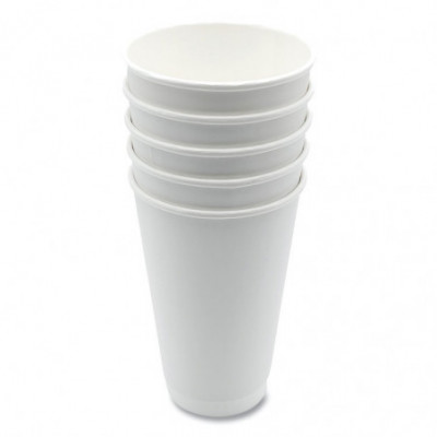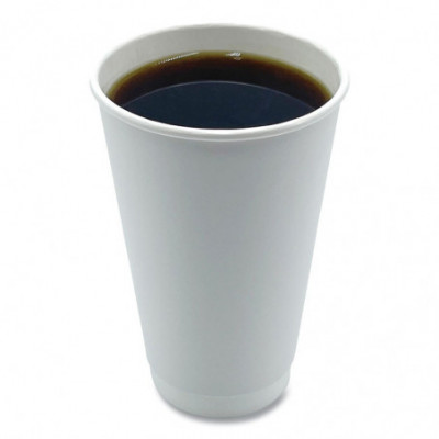 Paper Hot Cups, Double-Walled, 16 oz, White, 500/Carton