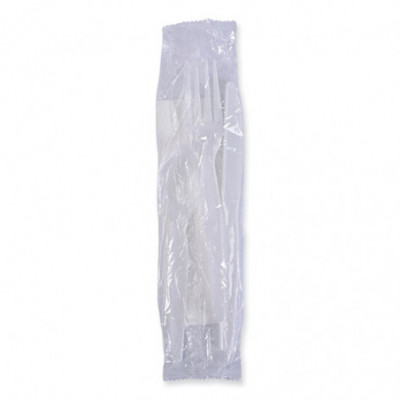 Make set-up or packing easier with an all-in-one cutlery set. Each set includes a fork, spoon, knife, napkin, salt, and pepper, allowing you to cover all your single serving needs with one, high-quality item. Individually packaged for convenience and to ensure utensils remain sanitary, even after handling. High-quality, economical design is perfect for most meals. Neutral color options allow for use in a variety of settings, from office parties to event catering.