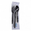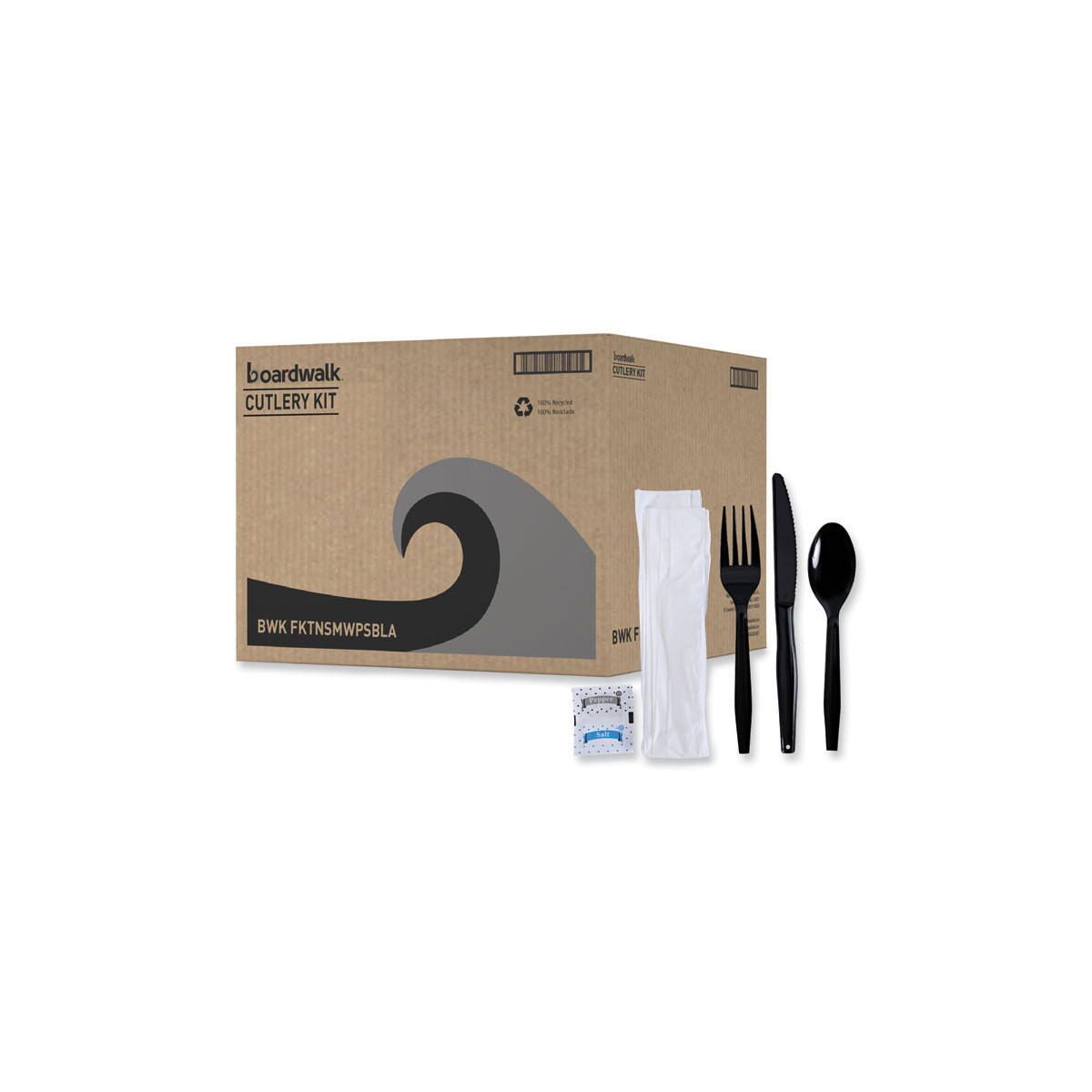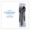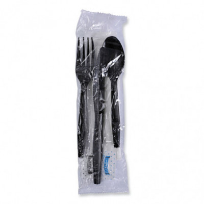 Six-Piece Cutlery Kit, Mediumweight, Fork/Knife/Napkin/Pepper/Salt/Spoon, Plastic, Black, 250/Carton