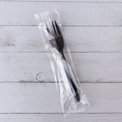 Mediumweight Wrapped Polypropylene Cutlery, Fork, Plastic, Black, 1,000/Carton