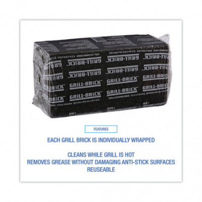 Solid, heat-resistant brick may be used while your grill is still hot, allowing you to clean up immediately after cooking so it's ready for next time. The gentle yet abrasive scrubber effectively removes grease and residue without causing damage to anti-stick, grill, or griddle surface coatings. Reusable, stone-like, abrasive brick slowly wears down with use, exposing a fresh surface for each use.