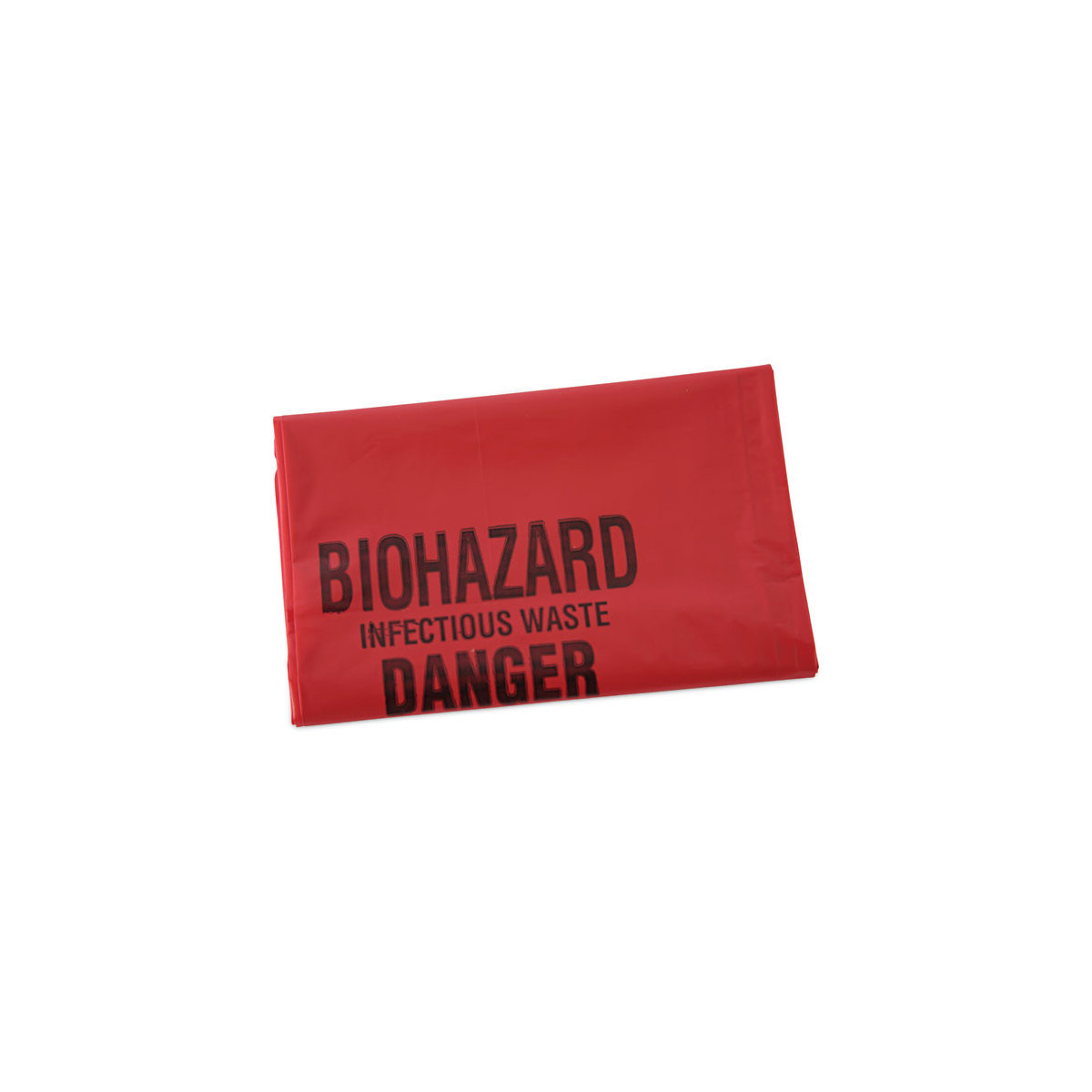 Linear, low-density, high-visibility, bright red medical waste can liners are designed specifically for biohazard materials in health care settings. A high-quality, blended resin can liner that's constructed with puncture and tear resistance for added strength and durability. Biohazard warnings printed in English and Spanish. Meets DOT requirements. Provides trusted trash collection for wet or dry hazardous waste at an economical price. Individually folded for quick and easy dispensing.