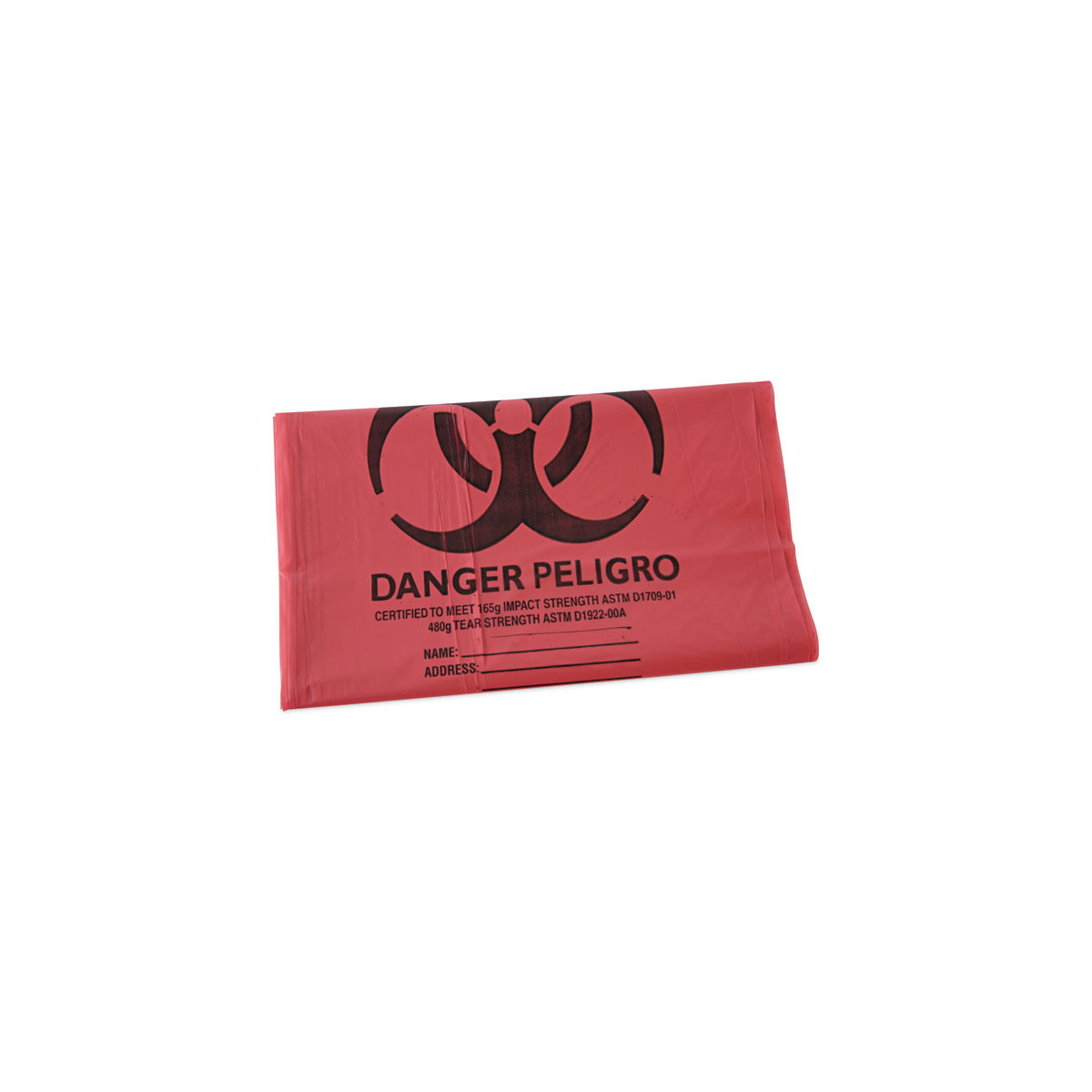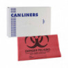 Linear, low-density, high-visibility, bright red medical waste can liners are designed specifically for biohazard materials in health care settings. A high-quality, blended resin can liner that's constructed with puncture and tear resistance for added strength and durability. Biohazard warnings printed in English and Spanish. Meets DOT requirements. Provides trusted trash collection for wet or dry hazardous waste at an economical price. Individually folded for quick and easy dispensing.