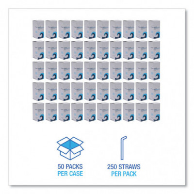 Jumbo Straws, Unwrapped, 7.75", Plastic, Translucent, 250/Pack, 50 Packs/Carton
