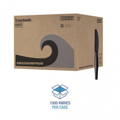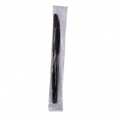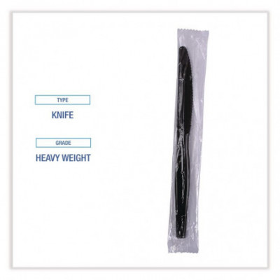 Heavyweight Wrapped Polypropylene Cutlery, Knife, Plastic, Black, 1,000/Carton