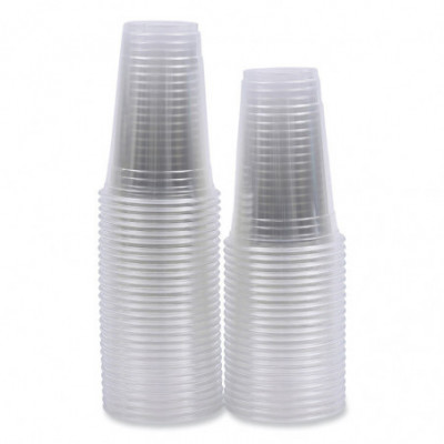 The clear option for cold drinks, high-quality PET plastic cups provide an upscale feel at an economical price. Durable and sturdy leakproof plastic cups are great for daily use, events, or offices. Thoughtfully designed with ridges around the cup and a thick rim for gripping or using a lid. The exceptional clarity of the plastic allows you to showcase snacks, cutlery, or other small items.