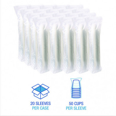The clear option for cold drinks, high-quality PET plastic cups provide an upscale feel at an economical price. Durable and sturdy leakproof plastic cups are great for daily use, events, or offices. Thoughtfully designed with ridges around the cup and a thick rim for gripping or using a lid. The exceptional clarity of the plastic allows you to showcase snacks, cutlery, or other small items.