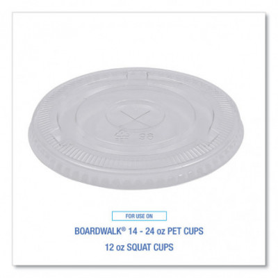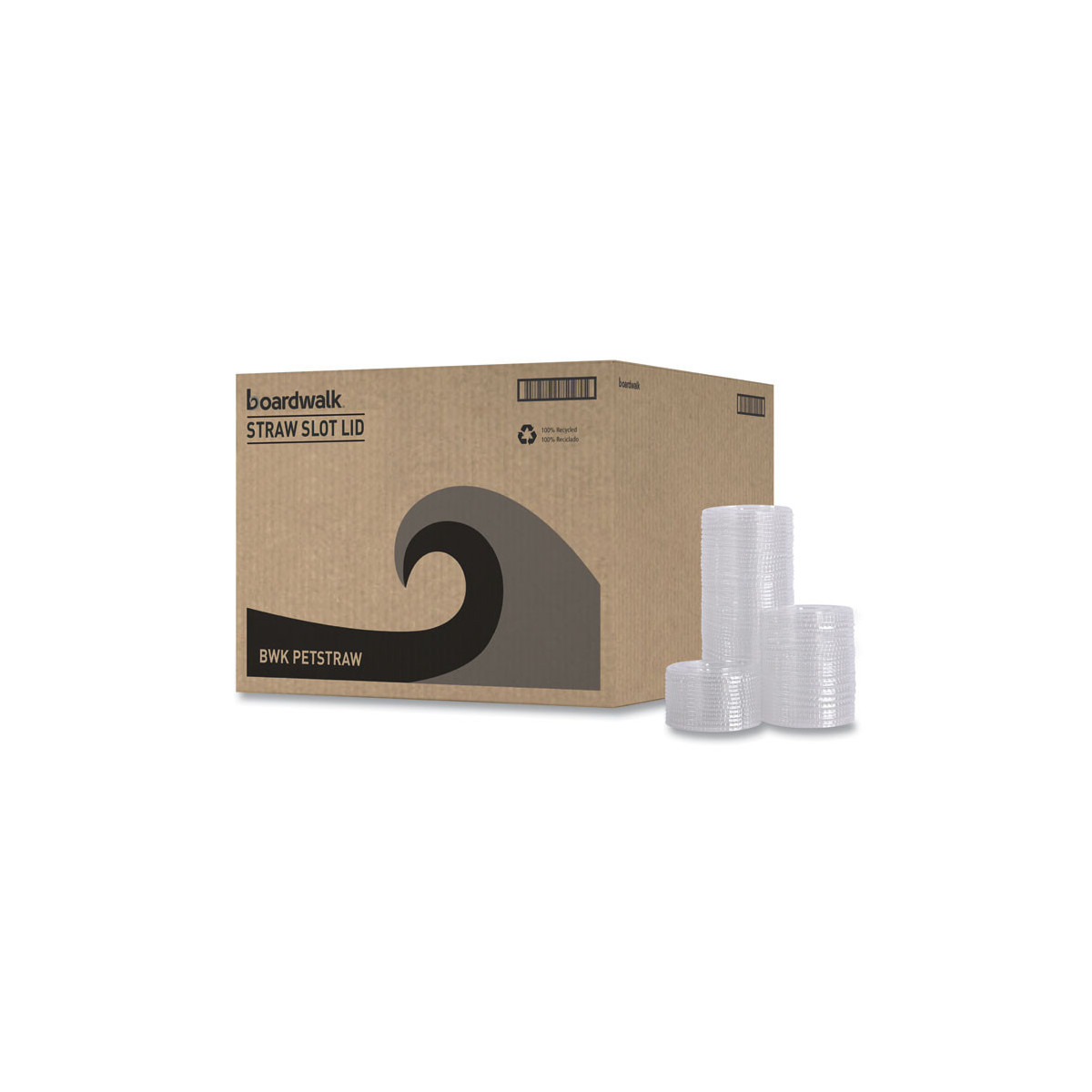 Sturdy PET cold cup lids lock tightly to prevent spills on the go. Fit Boardwalk® PET plastic 14 oz to 24 oz cups. Ridges on the clear top with a straw slot that accommodates a variety of straw sizes and materials. Designed to fit snugly around the rim of the Boardwalk® cups to ensure cold drinks stay inside until they are ready to be sipped. Packed in wrapped sleeves for sanitation and easy transport from the stock room to the beverage counter or preparation area.