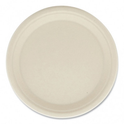 Bagasse PFAS-Free Dinnerware, Plate, Sugarcane, 10" dia, Tan, 500/Carton