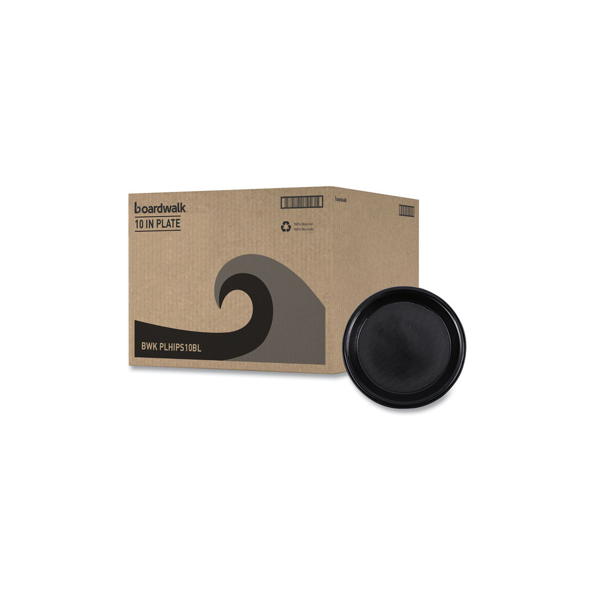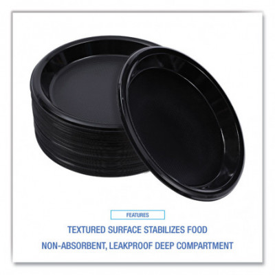 Hi-Impact Plastic Dinnerware, Plate, 10" dia, Black, 125/Sleeve, 4 Sleeves/Carton