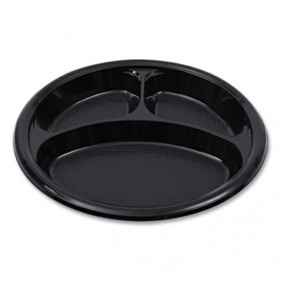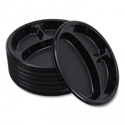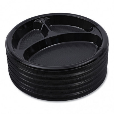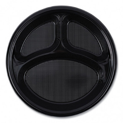 Hi-Impact Plastic Dinnerware, 3-Compartment Plate, 10" dia, Black, 125/Sleeve, 4 Sleeves/Carton