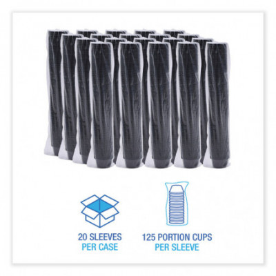 Souffle/Portion Cups, 2 oz, Plastic, Black, 125/Sleeve, 20 Sleeves/Carton