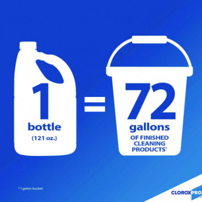 Show those germs who's boss with Clorox Germicidal Bleach from CloroxPro. This bleach is EPA-registered to kill 39 organisms, including multiple strains of MRSA, norovirus, flu virus, E. Coli, listeria and Salmonella when used as directed on countertops, floors, toilets and more. It meets EPA criteria for use against SARS-CoV-2, the virus that causes COVID-19. This 121 ounce bottle of bleach makes 30 gallons of germ busting cleaning solution to remove stains and kill mold and mildew. Clorox Germicidal Bleach also can be used in the laundry room to make whites whiter. It removes the toughest laundry stains from white clothes including red wine, grass, dirt and blood stains. It is safe to use in standard and high-efficiency washing machines. Ideal for use in busy healthcare environments, offices, schools and other commercial facilities. CloroxPro, where clean means everything. Packaging may vary.