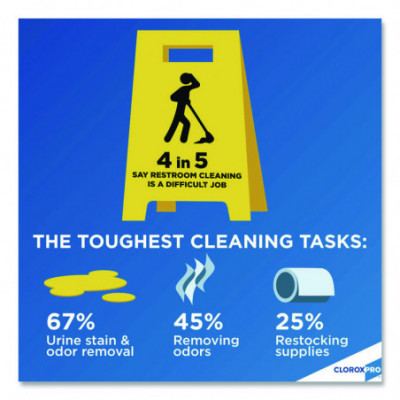 Clorox Urine Remover for Stains and Odors from CloroxPro tackles the toughest urine stains and odors. With the cleaning power of hydrogen peroxide, it quickly breaks down urine to eliminate odors and remove stains. This versatile cleaner is safe to use on most hard and soft surfaces. It is specially formulated for tough-to-clean porous surfaces, like grout, notorious for trapping urine odors. It also handles stains and odors on soft, absorbent surfaces like carpet and mattresses. This urine remover is also great for outdoor concrete, walls and flooring, laundry pre-treatment, pet stains, and bodily fluids removal including feces, blood and vomit. Ideal for offices, day care centers, schools, hotels, restaurants and other commercial facilities.