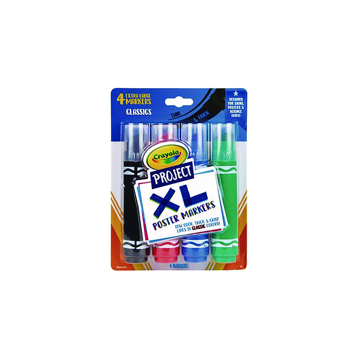 Make your assignments shine with the Crayola Project™ line. Though designed for posters, signs and science fair materials, these supersized markers are ideal for a wide variety of arts and crafts projects. No matter where you wish to aim your creativity, XL Poster Markers' full coverage design can help you hit your target. Their unique, thin and thick chisel tips are 50% wider than common marker nibs but taper to a fine, sharp point, allowing you to create super thick lines or very thin ones, depending on what you need to do at the time. School projects, presentations, posters, signs, decorations and more can more vividly stand out with crisp, neat lines when you choose Crayola® XL Poster Markers. Safe and washable, low-odor, non-toxic ink—ideal for children and adults, alike.