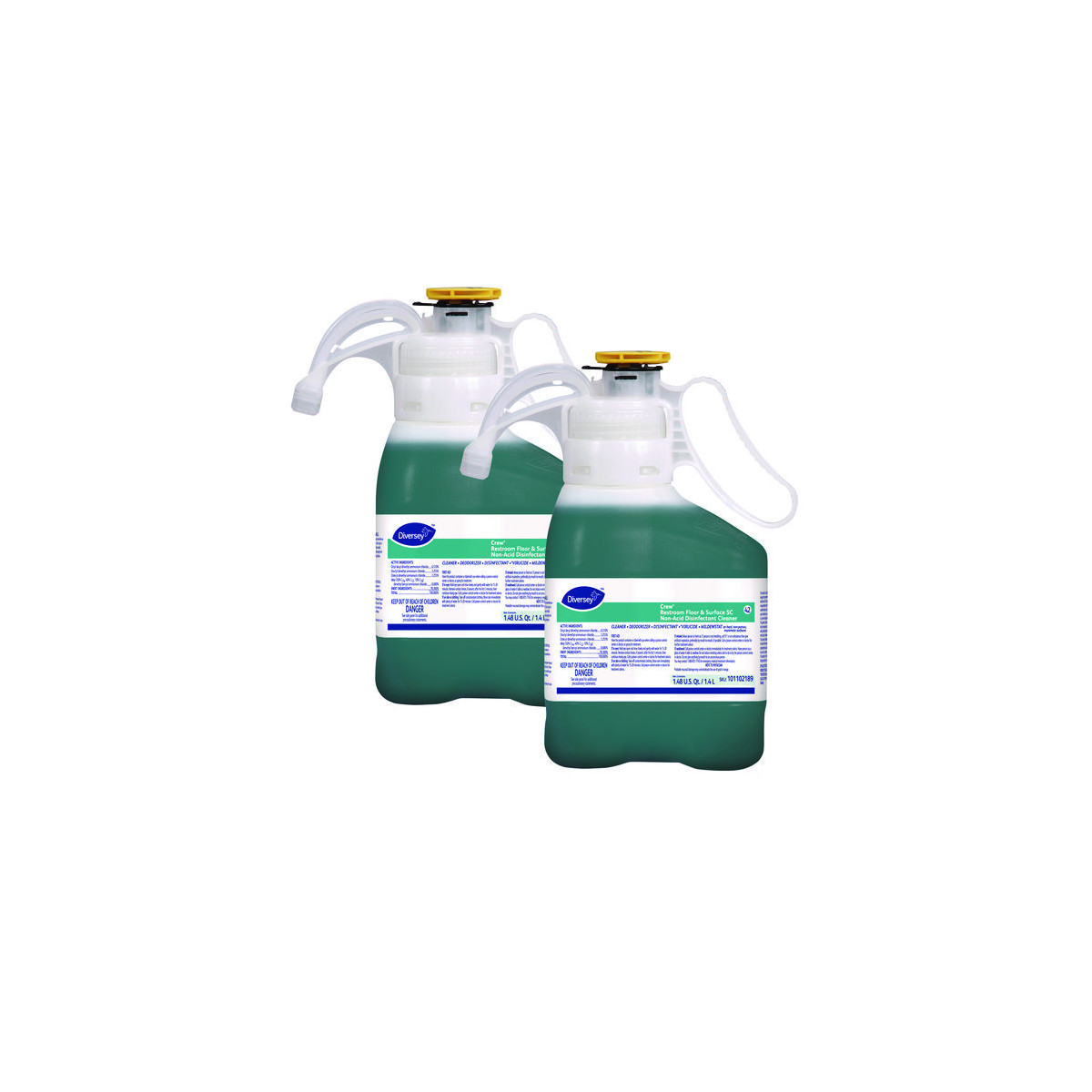 Non-acid restroom disinfectant cleaner. Cleans, disinfects and deodorizes in one easy step. Recommended for hard, nonporous, washable surfaces in and out of the restroom. Utilizes Crew fresh scent to keep consistent with most Crew restroom products.