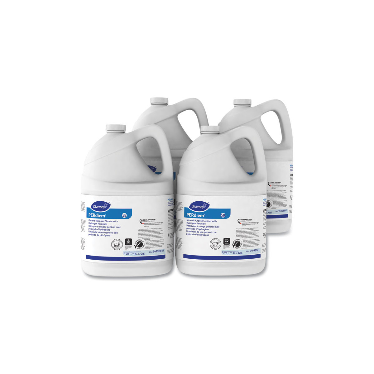 A concentrated cleaner based on proprietary Accelerated Hydrogen Peroxide (AHP®) technology. This heavy-duty cleaner is safe on most hard surfaces, including marble floors. Multiple dilutions allow for cleaning a wide range of cleaning applications, including floors, walls, glass and other hard surfaces. Product can be used for carpet extraction, prespray and spotting. Contains no added dyes or fragrance. Use in autoscrubbers, mop and bucket and spray-and-wipe applications. Colorless and odorless.