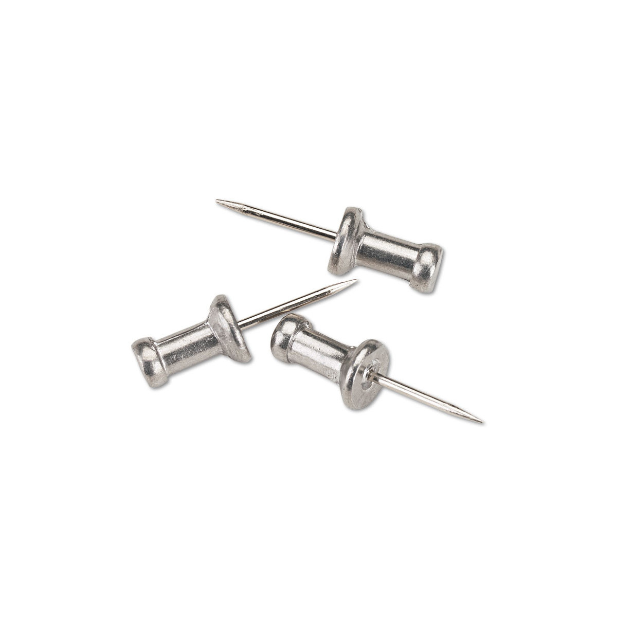 Aluminum Head Push Pins, Aluminum, Silver, 0.5", 100/Box