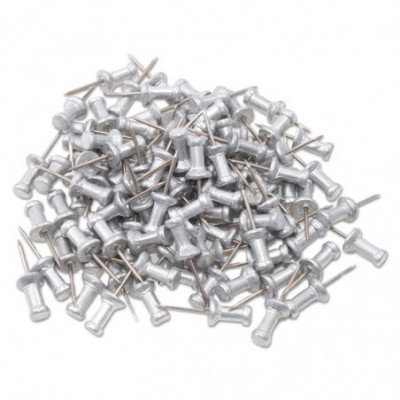 Quality aluminum head with a strong steel pin. The smooth extended head and sharp point allow these push pins to be inserted into the toughest surfaces. Easy to remove without harming fingers.