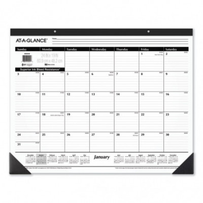 Pastel color recalls a color from nature. Strong, reinforced color-matched leatherette corners complement the pad's paper while keeping the pages in place and protected. Full-year reference calendar aids in planning throughout the year. Features numbered weeks, Julian dates and days remaining. Lightly ruled daily blocks help keep notations neat. Made entirely of recycled materials.