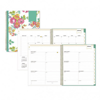 Different wild flower designs carried out throughout the planner and a matching wild flower cover. Convenient monthly/weekly format allows for a monthly over view and weekly detail, 12 months, January to December. Weekly section has open scheduling slots so you can enter times or notes for things to do that day. Both the weekly and monthly pages have a notes area on the right. The week starts on Monday and has full Saturday and Sunday. Each page has a two-month reference calendar showing the previous month and next month. Also features monthly indicators making it easy to find the month you need. Heavy paper cover has coordinated graphics with the inside of the book. Includes a three-year list of common holidays. Includes a double-sided paper pocket for notes, numbered weeks and Julian dates and days remaining.