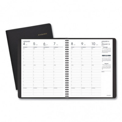 A perfect planner to keep all of your meeting information. It features 110 pages for notes and follow-up action listings. The heavy, two-piece, hard leatherette book cover folds over to make taking notes easy, even without a writing surface. Each page has ample space for recording your meeting agenda, action items, attendees, topics and notes. Each spread has a full-year reference calendar. Made entirely of recycled materials.