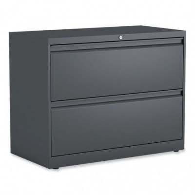 Lateral file accommodates the largest volume of filing in an efficient format that saves floorspace. Fully assembled and ready to use. Steel ball-bearing drawer suspensions operate easily and quietly. Drawers are equipped with standard hangrails to hold either letter- or legal-width hanging files. Drawers open fully to give easy access to all contents. File folders are arranged side-to-side to take up less aisle space when drawers are opened. Durable laminate resists scratches, spills, and stains.
