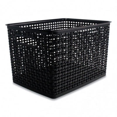 The file storage crate includes rails to hold letter or legal-size hanging files. Made of durable plastic, the crate can be used alone for storing or stacked with other crates to create a convenient wall storage unit.