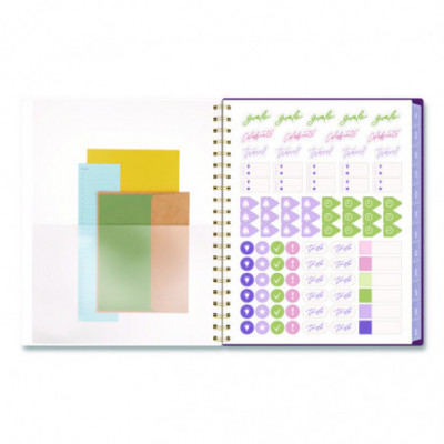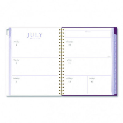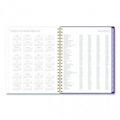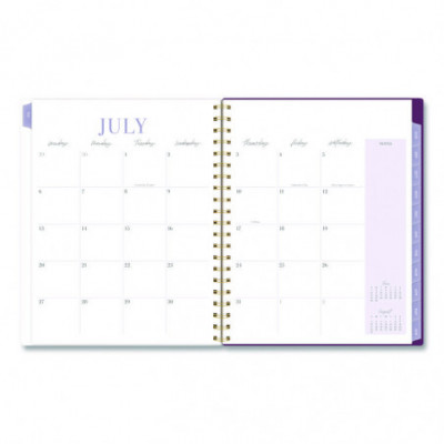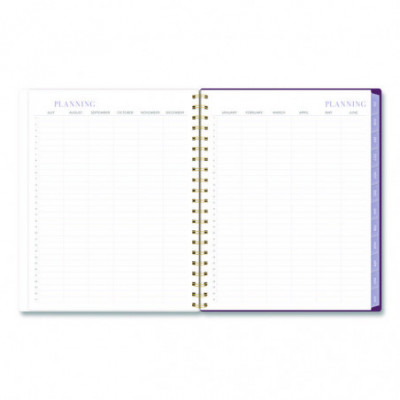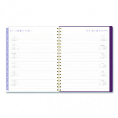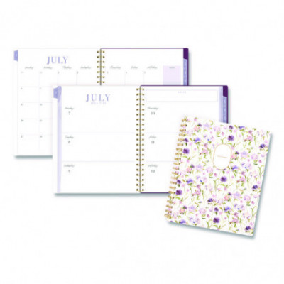 Planner has a delicate floral pattern and covers 12 months from July to June. Weekly spreads feature unruled planning space and a section for notes. Monthly spreads have unruled daily blocks, a notes section, past and future reference calendars and a tab for easy navigation. Special pages include a reference calendar, holiday list, future planning pages, notes pages and a double-sided pocket. Durable poly cover helps the planner stand up to wear and tear, while twin wire binding helps prevent snags.