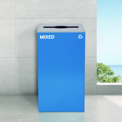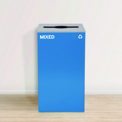 (1) Blue Mixed Recycling Can with Mixed Lid