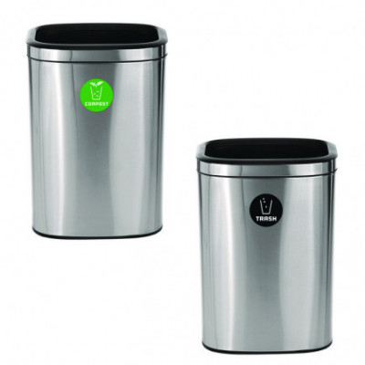 Set of 3, 29 gal Cans-Includes one blue Cans/Bottles Recycling Can with Mixed Lid, one green Compost Can and one Black Trash Can both with Square Lids.