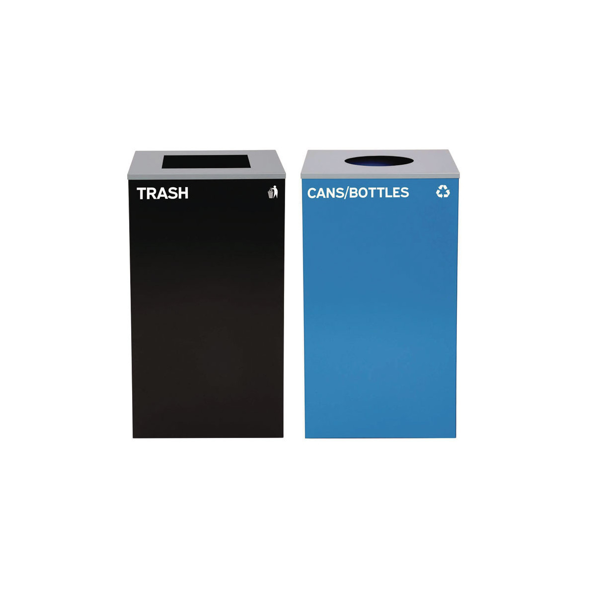 29 Gallon Trash/Recycling Cans, Steel, Blue Cans/Bottles Recycling with Circle Lid, Black Trash Can with Square Lid