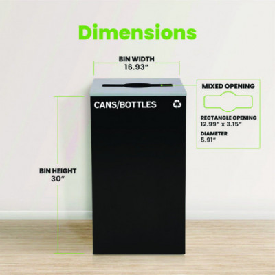 One 29 gal Can-Includes one black Cans/Bottles Recycling Can with Mixed Lid.