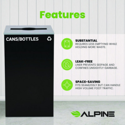 This generous capacity bin is perfect for use in any environment - from homes to offices, schools, and more. It can handle high-volume foot traffic and require less emptying from your maintenance staff. Crafted from durable powder-coated steel to ensure they're built to last, even with heavy use. Its included removable plastic liner will prevent leaks from seeping out and is a cinch to clean when needed. Included lids and stickers allow you to tailor your receptacles based on your needs.