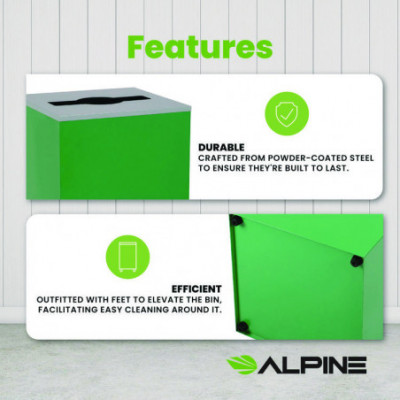 This generous capacity bin is perfect for use in any environment - from homes to offices, schools, and more. It can handle high-volume foot traffic and require less emptying from your maintenance staff. Crafted from durable powder-coated steel to ensure they're built to last, even with heavy use. Its included removable plastic liner will prevent leaks from seeping out and is a cinch to clean when needed. Included lids and stickers allow you to tailor your receptacles based on your needs.