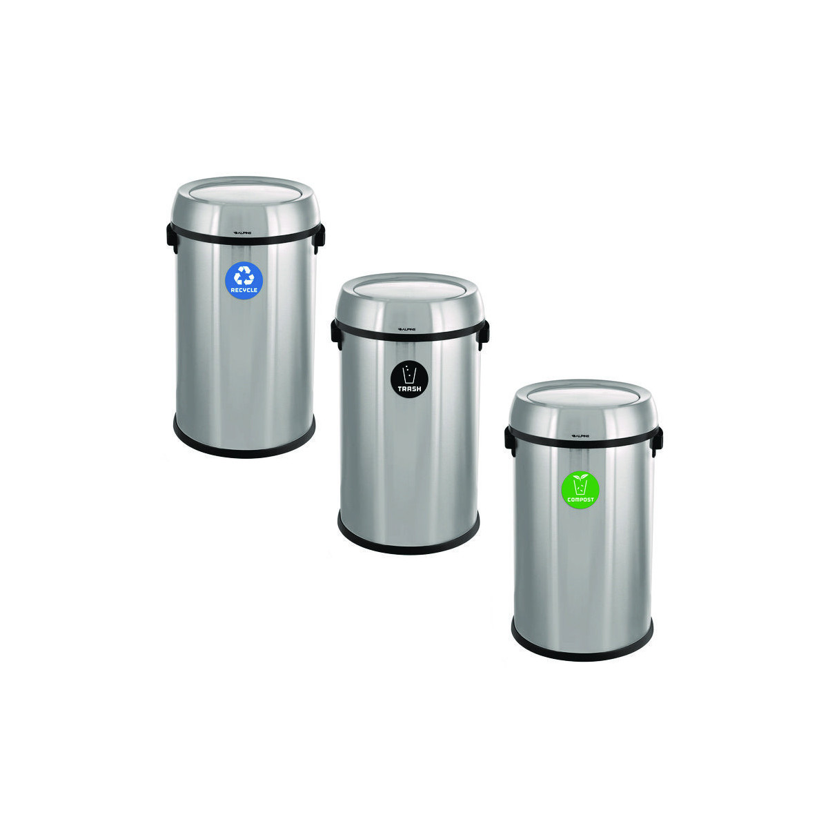 When equipping your business's interior with waste receptacles, you want to be reassured it will survive constant daily use and add to your company's aesthetic. With these modern, multi-stream waste management stainless steel indoor compost, trash and recycling bins with swivel lids, you can be confident you're getting an everlasting product that will help maintain cleanliness in your facilities. The 17-gallon capacity is sure to accommodate a more significant amount of compost and trash, fulfilling your foot traffic demands.