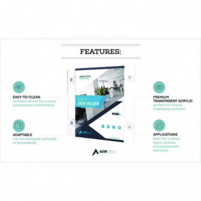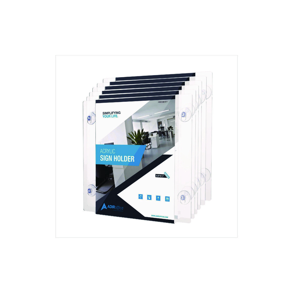 Posting temporary notices for employees, customers, special events, sales, opening/closing hours and more no longer needs reliance on cellophane tape, masking tape or similar stickums that leave messy residue on glass walls, doors and windows when the event is over. Separate notices easily slip into the crystal clear AdirOffice Suction-Mount Acrylic Window Sign Holder to reach incoming and outgoing patrons and personnel with relevant messages. Though firmly attached to glass surfaces with its four suction cups, the sign holder is easily lifted up and off to clean glass behind the sign support.
