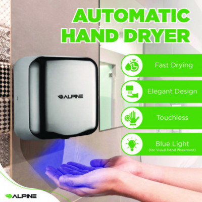 This hand dryer is a high speed automatic hand dryer with a unique design offering a blue light for hand drying efficiency.