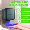 The Hemlock hand dryer has a plug-in option for fast and easy installation. The dryer will activate automatically when hands are placed underneath it and will stop when hands are removed. It also features auto-stop function if hands are not removed after 63 seconds. With its powerful 22,000 RPM motor the Hemlock hand dryer will dry your hands in just 10 seconds which is faster than other competitive high speed hand dryers and is great for high traffic areas. The Hemlock Hand dryer can save you thousands of dollars a year in paper towels and electricity.