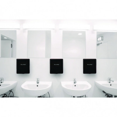 High speed automatic hand dryer with a unique design offering a blue light for hand drying efficiency, HEPA filter to clean bacteria from intake air, and is even equipped with a heat and speed control.