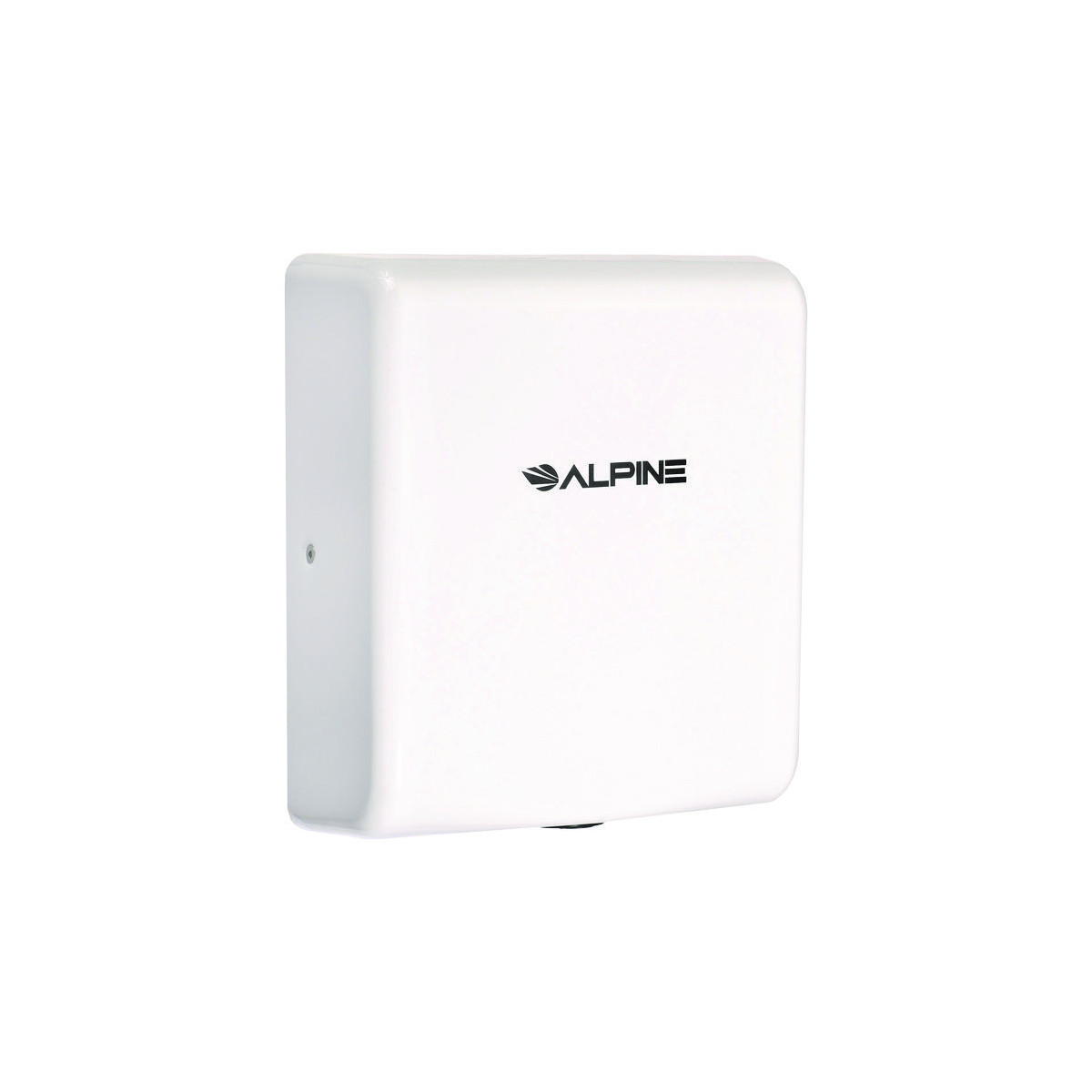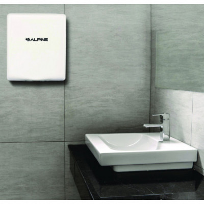 The Alpine Industries Willow Commercial Automatic Electric Hand Dryer is a high-speed automatic hand dryer with a unique design offering a blue light for hand drying efficiency. A HEPA filter cleans bacteria from intake air and the dryer is even equipped with a heat and speed control. With a less than 4" depth, this hand dryer is ADA-compliant without the need of a recess kit. With a powerful 32,000 RPM motor, the Willow model will dry your hands in 10 seconds, faster than many comparable high-speed hand dryers and excellent for high-traffic bathroom areas. Saving thousands of dollars per year in paper towels and electricity, the Willow hand dryer is also equipped with a plug-in option for quick and easy installation. Hand dryer automatically activates when hands are placed beneath the sensor and stops when they are removed. Also features auto-stop function if hands are not removed after 63 seconds.